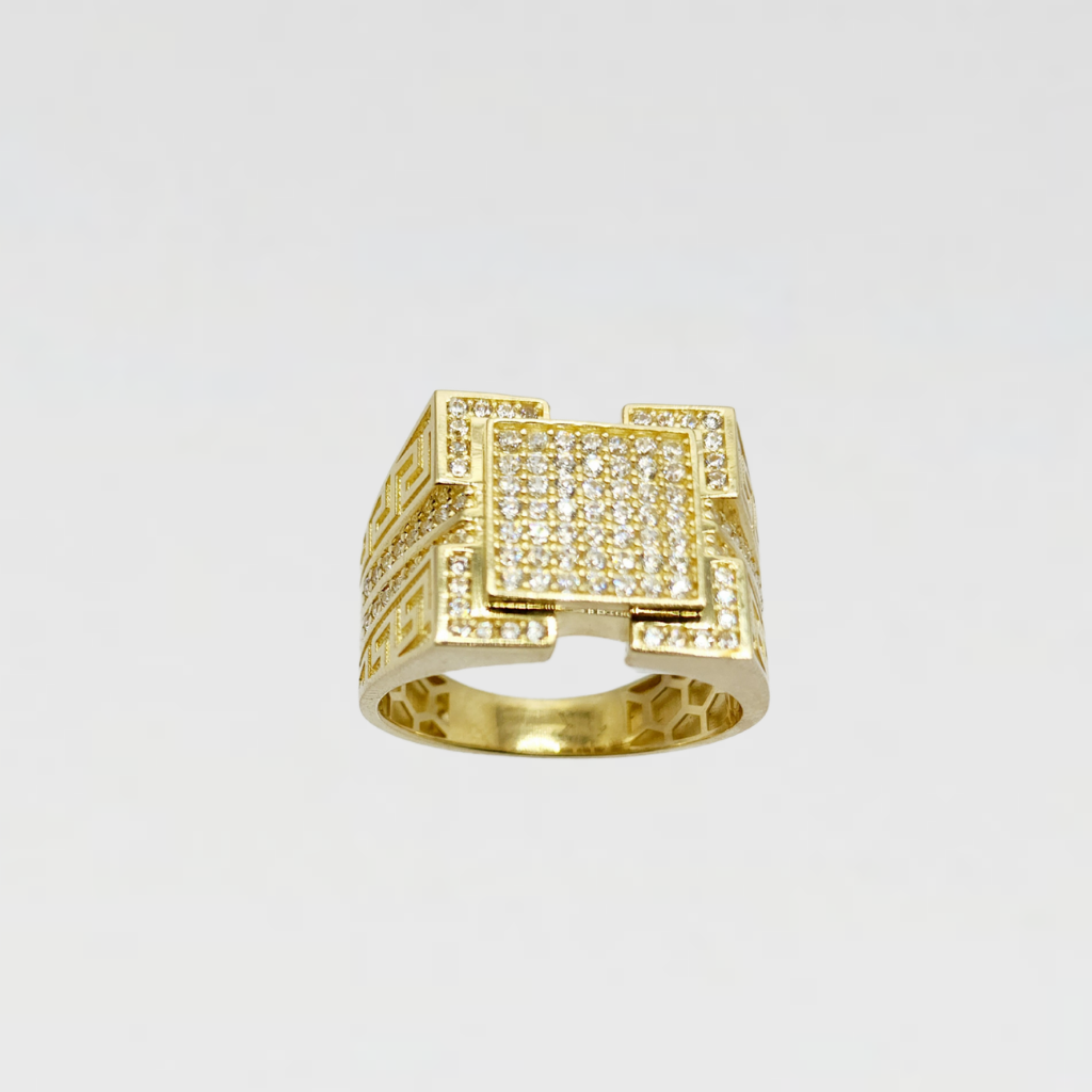 10K Anillo De Hombre - Cuadrado Con Diseño Y Diamante