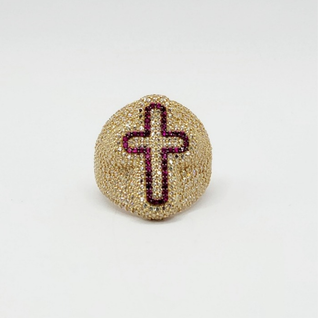 10K Anillo De Hombre - Con Diamante ( Diseño - Cruz )