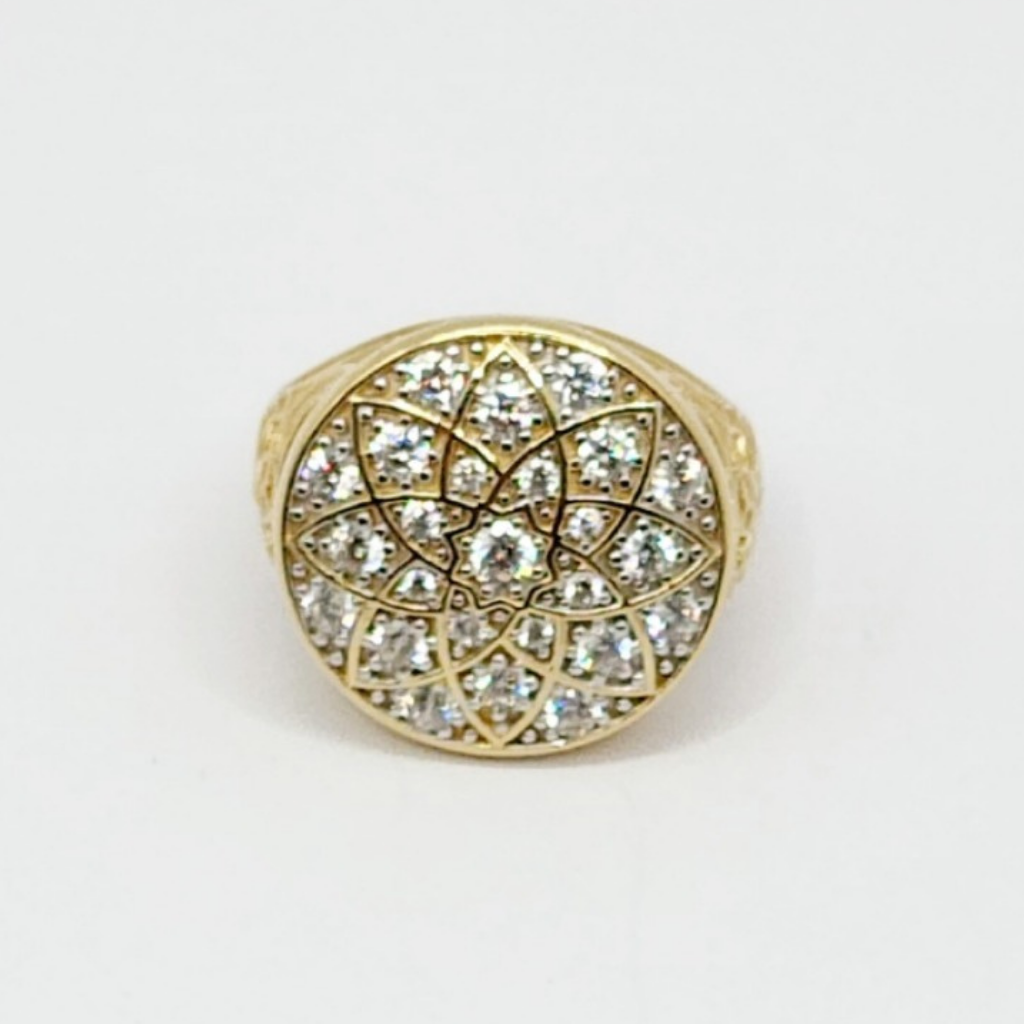 14K Anillo De Hombre - Diseño Floral Y Piedras En Grupo Con Diamante