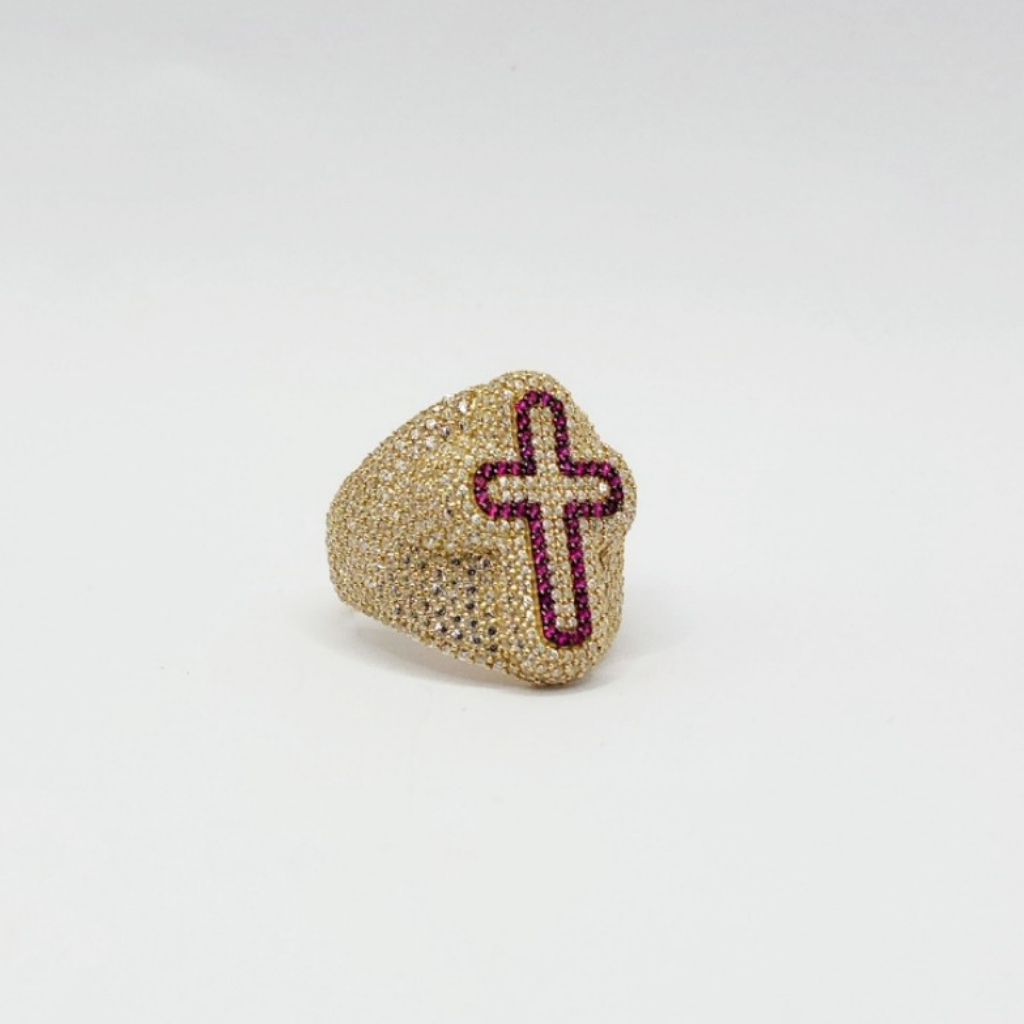 10K Anillo De Hombre - Con Diamante ( Diseño - Cruz )