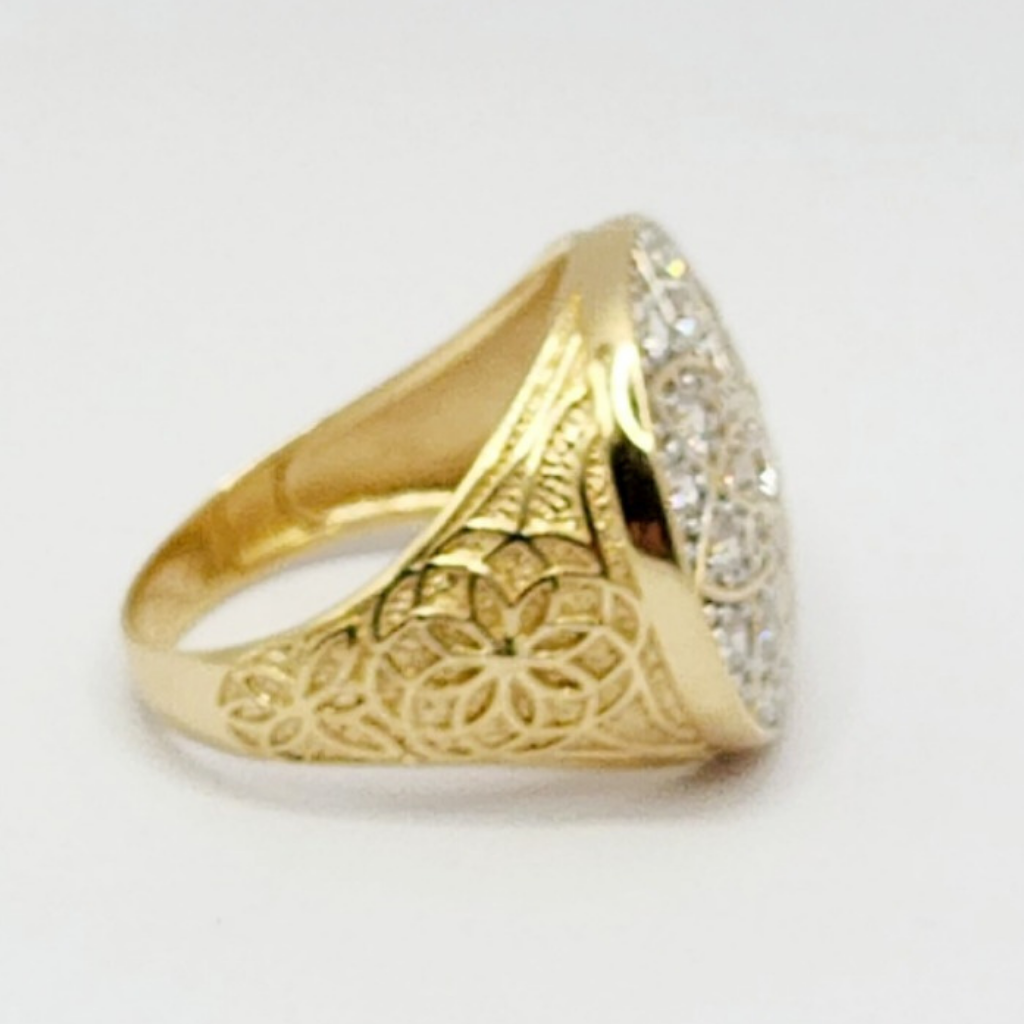 14K Anillo De Hombre - Diseño Floral Y Piedras En Grupo Con Diamante